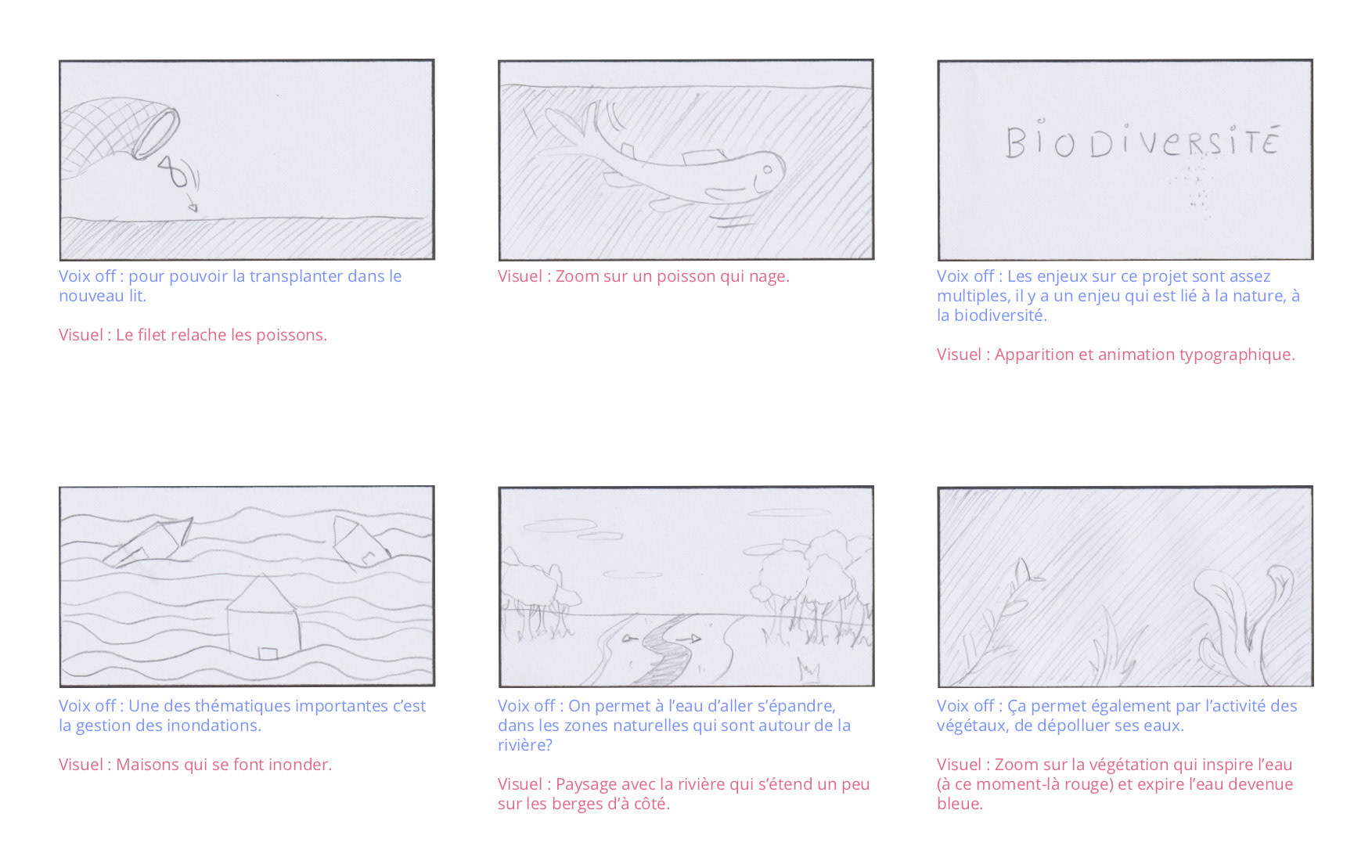 Exemple de storyboard, réalisé pour une vidéo en motion design et dessin animé.